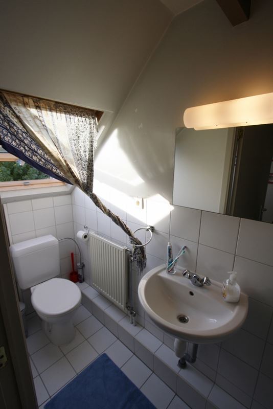 Onder dak mezzanine die benut wordt als slaapruimte.