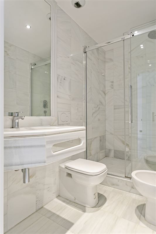 Achteraan het appartement treft men 2 slaapkamers en 2 volledig ingerichte douchekamers met telkens een toilet.