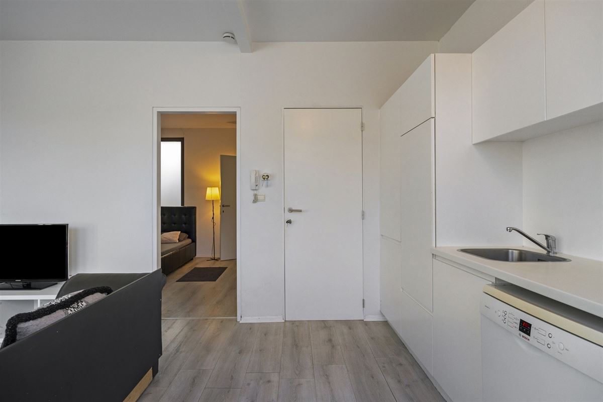 Ze omvat een lichtrijke leefruimte met een open ingerichte keuken (spoelbak, dampkap, keramische plaat, koelkast en diepvriesvak, afwasmachine, oven)  een slaapkamer, een badkamer met douche, een lavabo met grote legkast onderaan en een ruime opbergkast met aansluiting voor een wasmachine en tot slot is er een apart toilet.