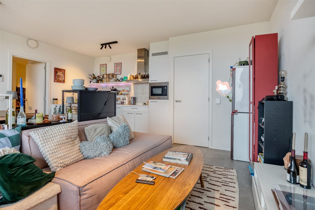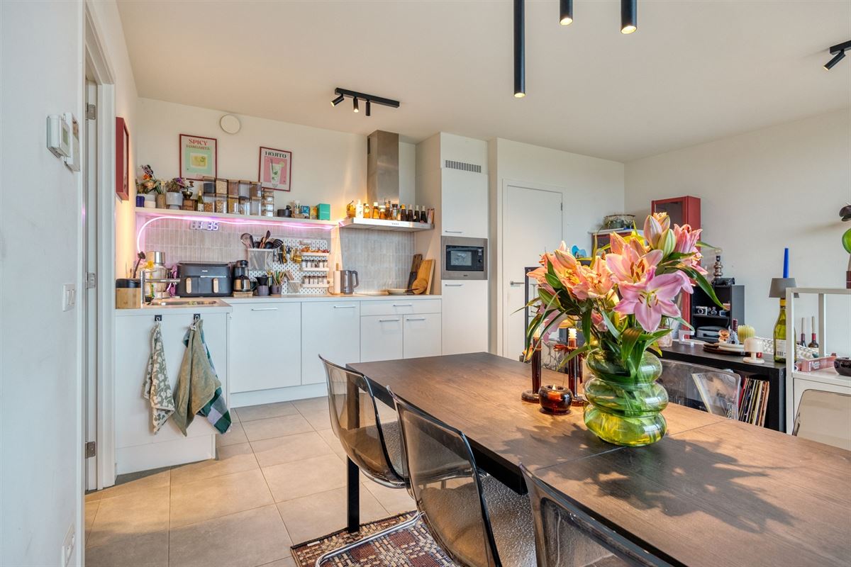 De ruime inkomhal leidt naar de lichtrijke leefruimte die uitgeeft op een royaal terras ideaal om te ontspannen en te genieten van het uitzicht. De moderne, volledig uitgeruste keuken sluit naadloos aan bij de woonkamer. Verder beschikt het appartement over twee volwaardige slaapkamers, een badkamer met douche, een aparte toiletruimte en een praktische berging.