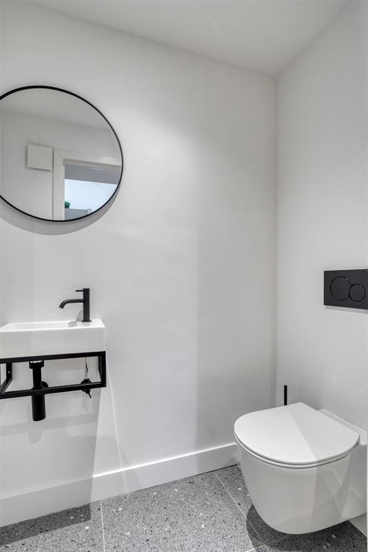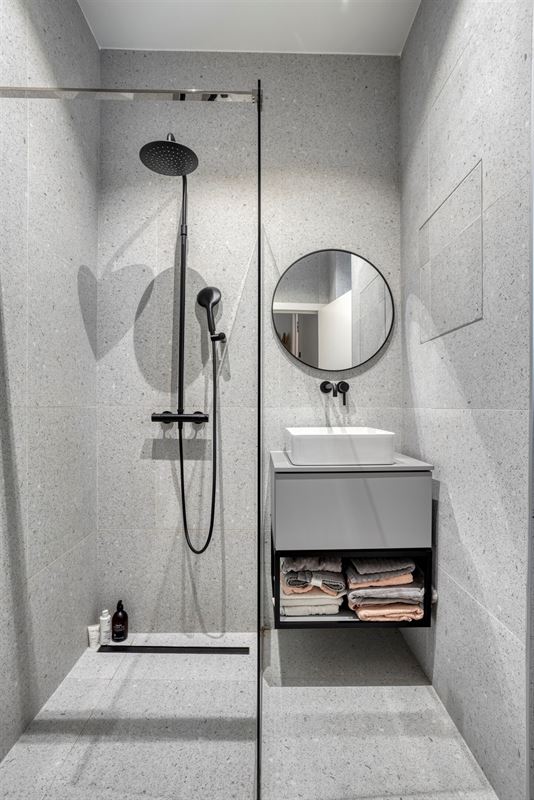 tussenverdiep bevindt zich een praktische en stijlvolle douchekamer. De slimme indeling en