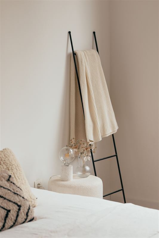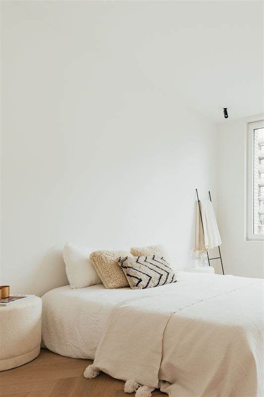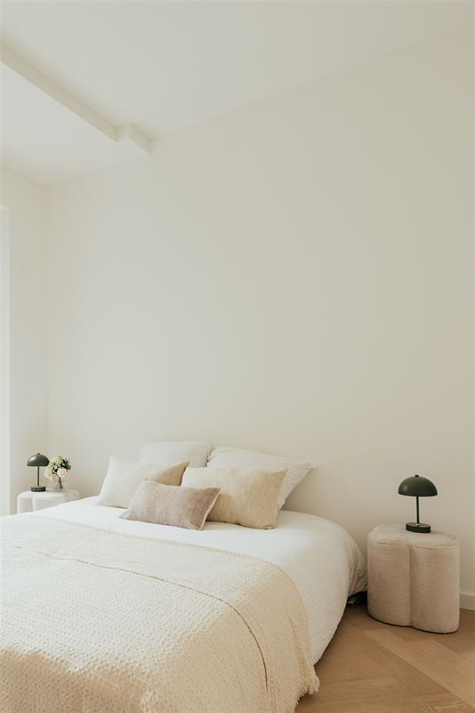 Het appartement beschikt over twee slaapkamers, waarvan de voorste voorzien is van rolluiken voor extra comfort.